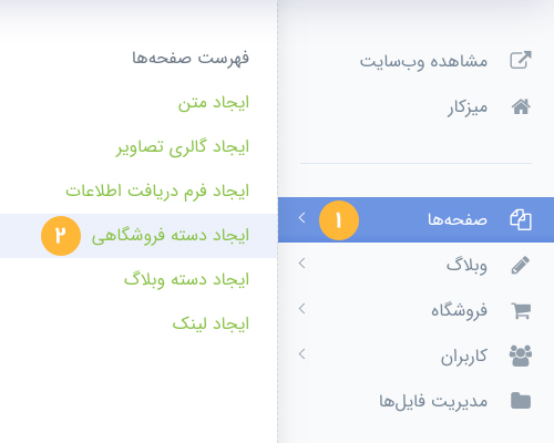 ۲- گزینه «ایجاد دسته فروشگاهی» را انتخاب کنید.