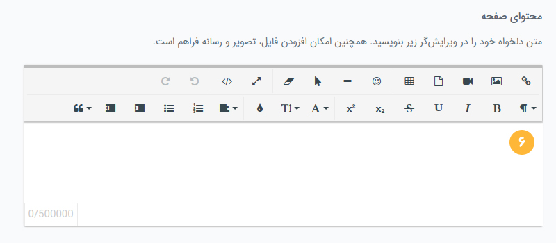 ۶- متن توضیحات کلی درباره مجموعه تصاویر را در قسمت «توضیحات صفحه» بنویسید و با استفاده از نوار ابزارها ویرایش کنید.
