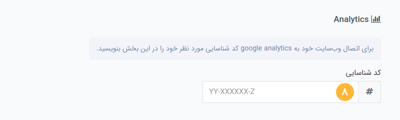 ۸- در انتها، برای اتصال وبسایت خود به google analytics کد شناسایی مورد نظر خود را در آخرین فیلد بنویسید.