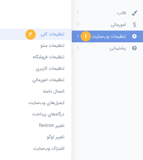 برای انجام تنظیمات کلی وبسایت خود، مراحل زیر را دنبال کنید: