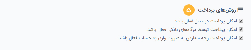 ۵- روشهای پرداخت مورد نظر خود را تیک بزنید.