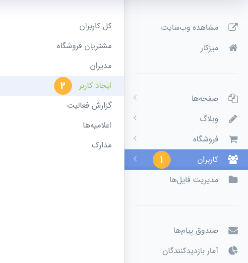 ۱- از منوی بخش مدیریت وبسایت روی «کاربران» کلیک کنید.